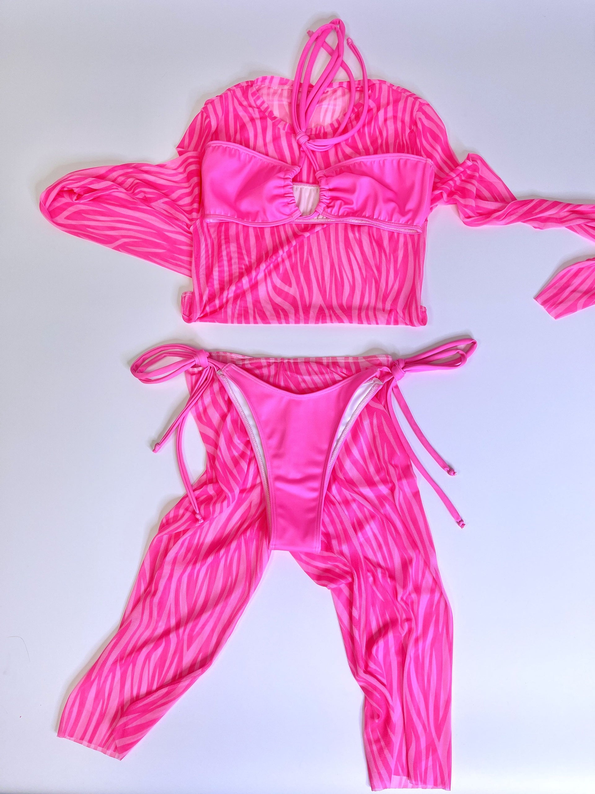 Neon Baby Pink Animal Print - Mesh Biker Shorts